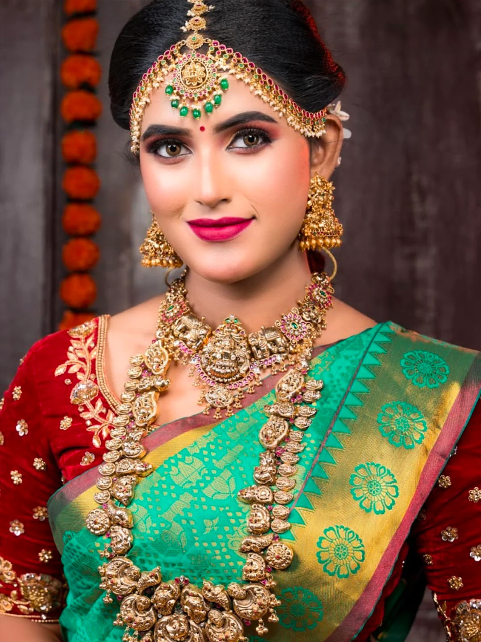 At BridalMehandi.com by Alok, beauty meets perfection with our professional bridal makeup services that enhance your natural glow while matching your unique style. Whether it’s your wedding day, engagement, or a festive celebration, our expert makeup artists ensure you look picture-perfect from every angle. We specialize in creating radiant, long-lasting looks that complement your bridal mehndi, outfit, and jewelry — making you the center of attention on your big day.