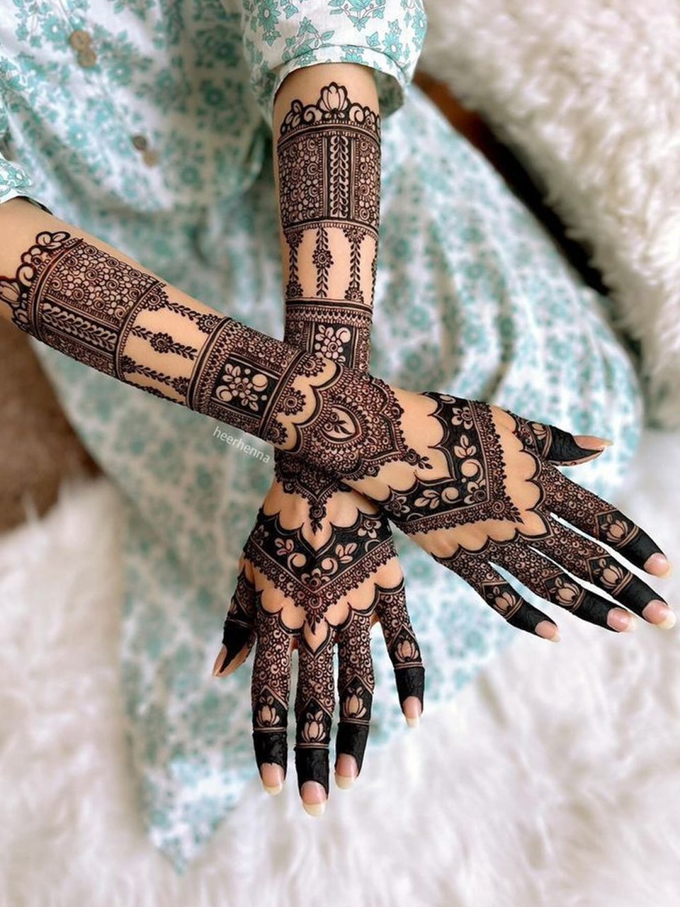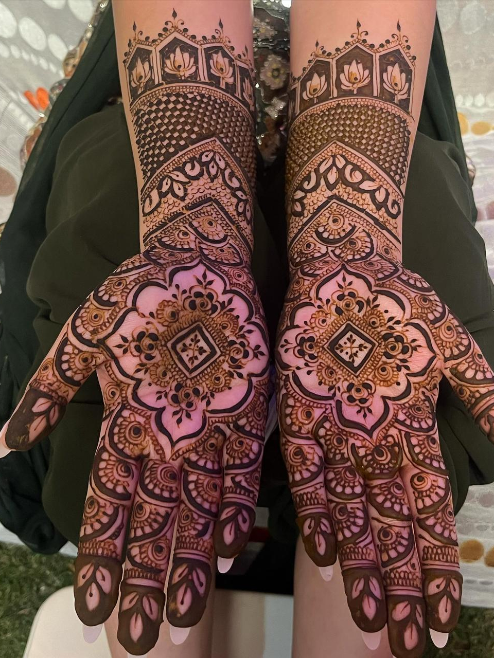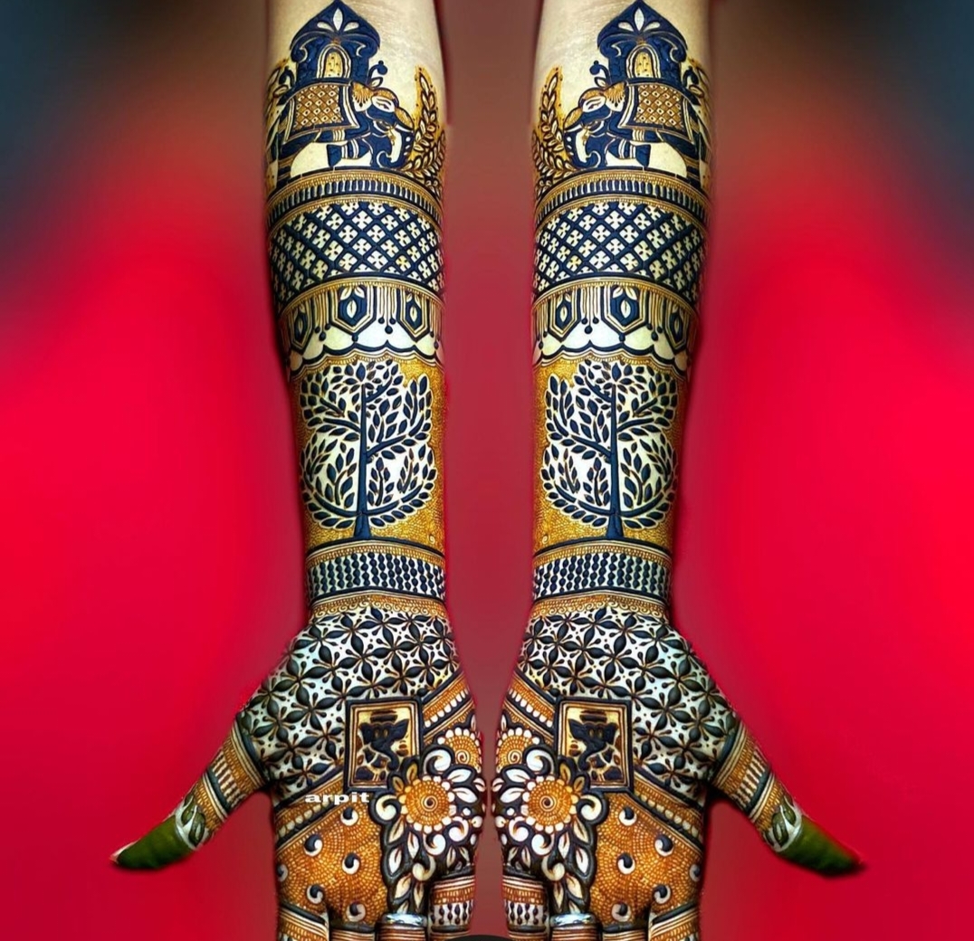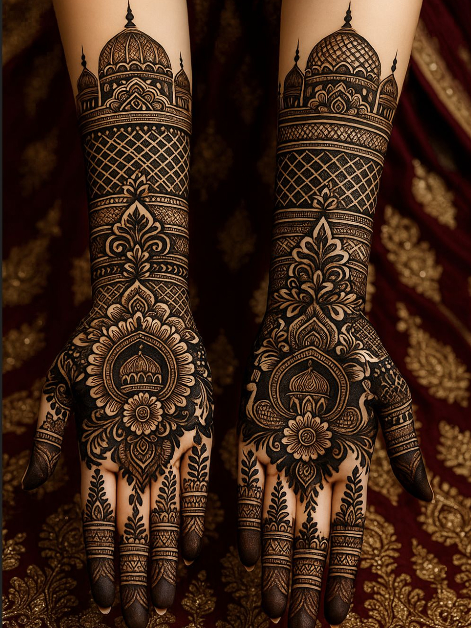 Crafted by Alok – a leading Mughlai Mehndi Artist in Delhi NCR, each design combines delicate floral patterns, paisleys, and fine mesh detailing that flows beautifully across the hands and arms. The intricate work ensures full coverage while maintaining clarity, balance, and symmetry — giving you a truly majestic look that stands out in every photograph.